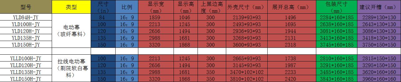 拉线电动幕适用幕面:BT10(背投软幕)、BZ2K(编织透声幕)、BZ4K(编织透声幕)、DK04-B(打孔透声幕)、DK04-H(打孔透声幕)、DK10-Y(打孔透声幕)、JR15(金属软幕)、RB10(单胶软白)、RH10(单胶软灰)、CJ18(长焦抗光幕)