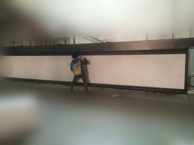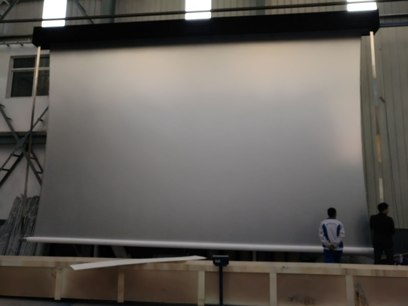 2、幕布左右两侧采用弹力可调拉线结构,可以消除幕布表面的“水波纹”等不平整现象,配合渐开线式卷轴结构,确保幕面平整。