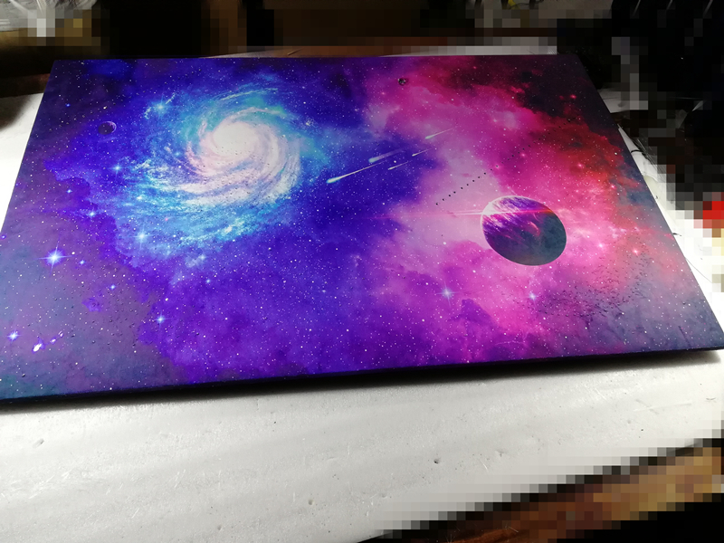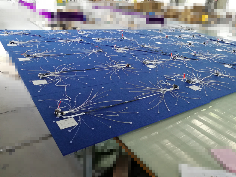1、基板采用12mm厚度的光面星级环保吸音板制作,降噪系数NRC=0.75,吸音性能为Ⅱ级,材料密度每平米约1.7kg。2、选用直径1.0-3.0光纤做为光源传输,环保无幅射,基材表面数控加工打点,保证图案的一致性及美观性。3、喷绘型的基材表面用A级绒布电脑喷绘图案后粘贴,健康环保,绒布包边后模块与模块之间拼缝不会露白,整体画面有立体层次感。4、每张板材上都有独立的可编程控制器模块,现场安装时只需要连接板与板之间的信号线即可,简单快捷。且输出电源为12V直流电压,无安全隐患,电源无风扇自然散热。可提供甲醛,ROSH,等检测报告。